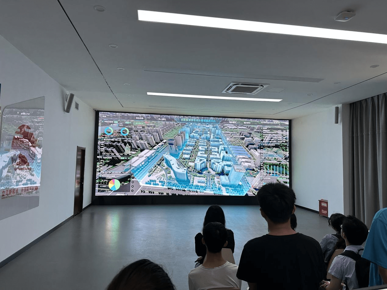 在泊车集团工作人员的引导下,合肥学院师生一行首先参观了一楼演示展厅,深入了解了泊车集团的企业背景、发展历程。此外,展厅讲解员还为在场师生介绍了泊车集团自主设计、研发的“合肥智慧停车综合管理服务平台”和“合肥停车大数据云平台”两大科创硕果,并通过3D大屏现场演示“合肥智慧停车综合管理服务平台”的功能。大屏运用三维实景的数字孪生技术展示停车资源的空间分布与状态变化,同时运用评估模型和数据分析技术,以可视化形式展现停车大数据分析结果,为莘莘学子生动演绎了城市智慧交通的独特魅力。